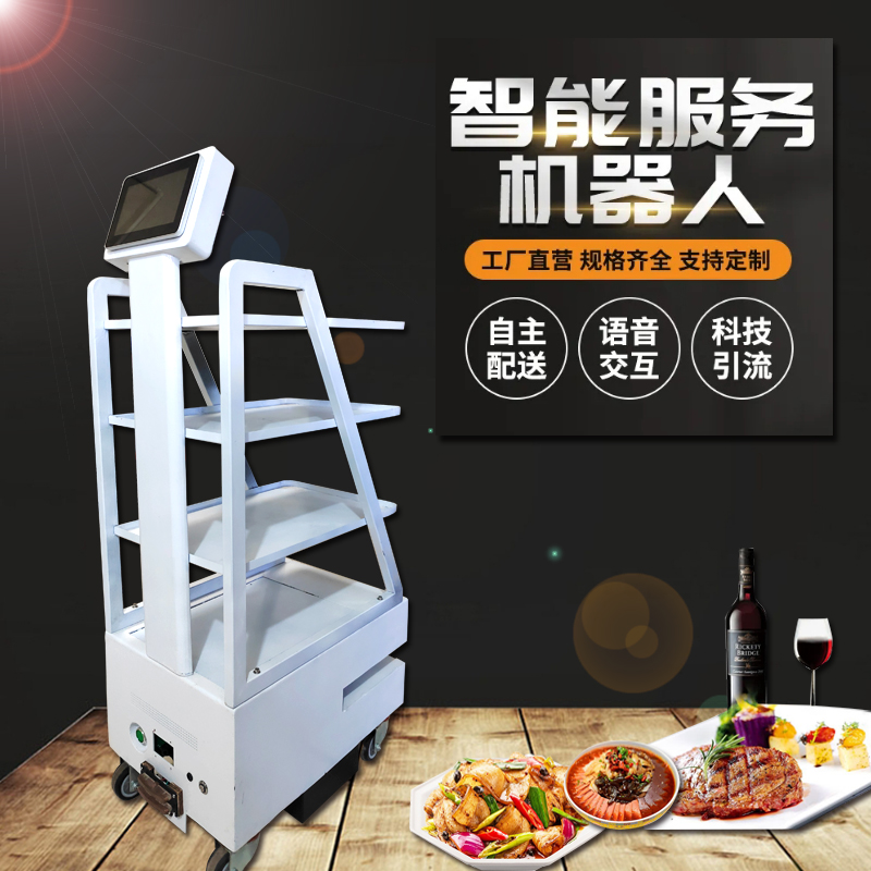 闖王新款送餐機器人大屏廣告激光導航智能機器人